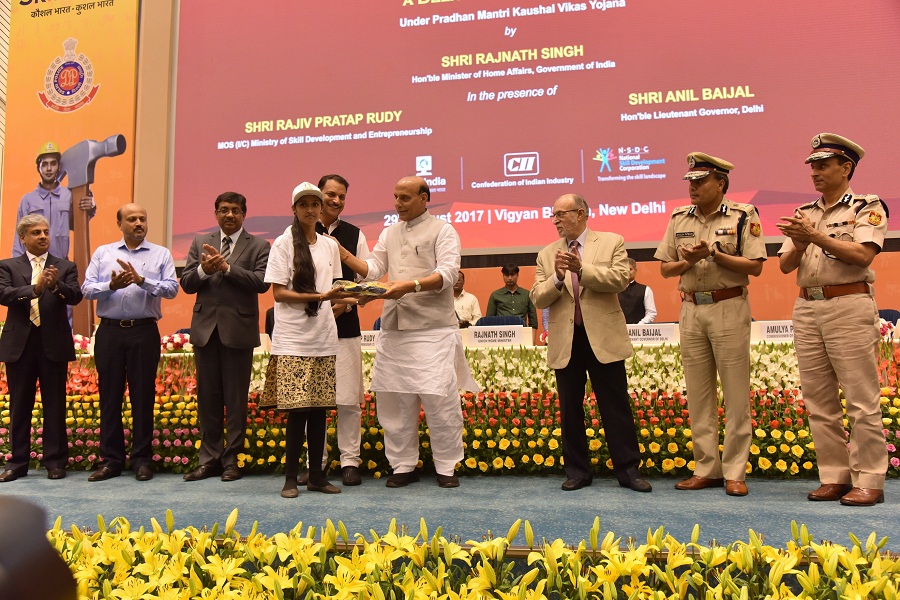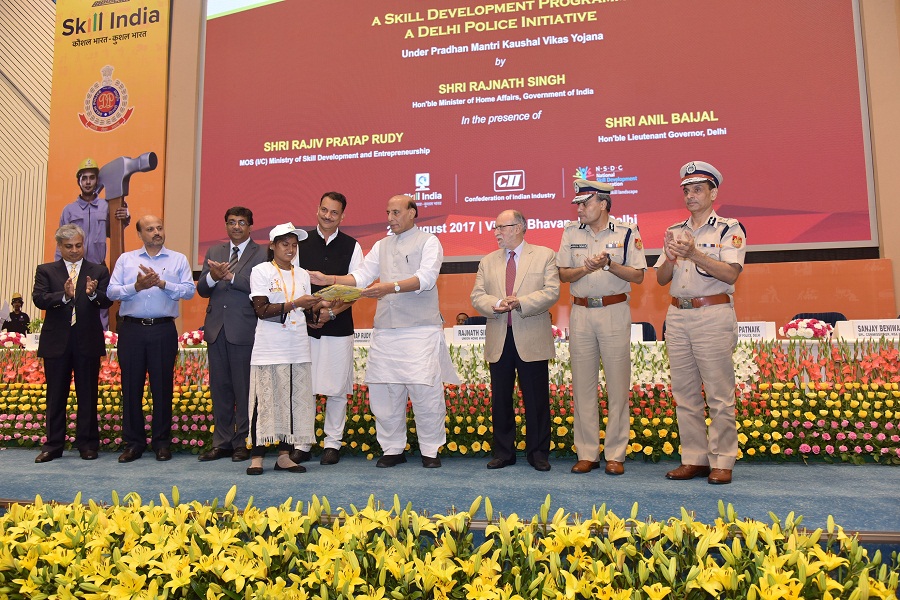 Sh. Rajnath Singh Hon’ble Minister of Home affairs, govt of India, launches Yuva – a Delhi Police Initiative in community policing with National Skill Development Corporation (NSDC) & Confederation of Indian industry (cii) at vigyan bhawan, New Delhi (29-08-2017)